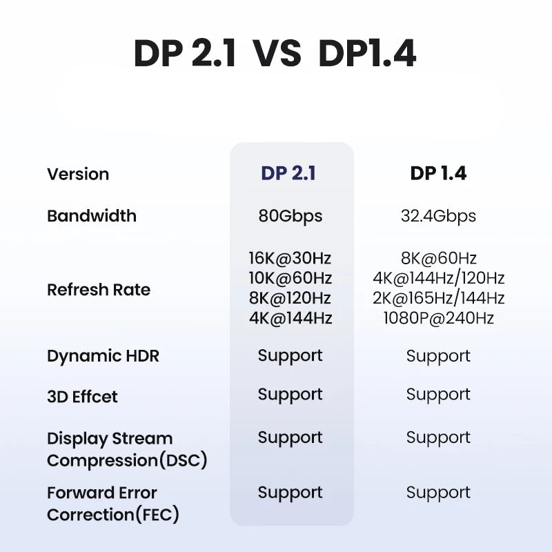 Supports the latest DisplayPort 2.1 standard for stable, loss-free transmission at extreme resolutions and refresh rates.