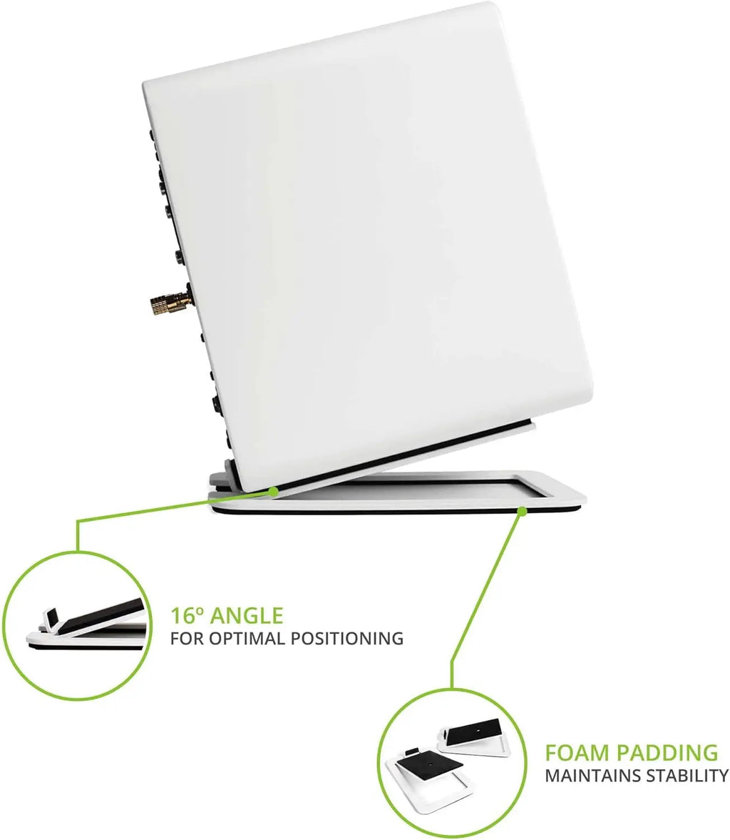 Featuring a 16° upward tilt, anti-resonance foam padding, and a minimalist white finish, these stands provide optimal sound projection while keeping your desk setup sleek and organised.