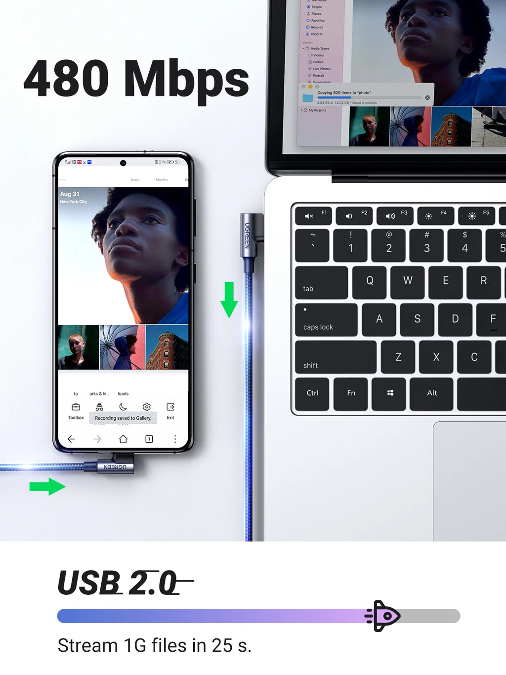- Data Transfer Speed: Up to 480Mbps