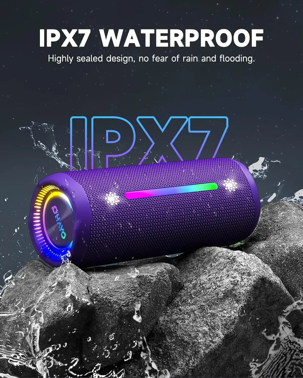 Engineered with IPX7 waterproof protection, this wireless speaker ensures worry-free enjoyment in any weather. With Bluetooth 5.3 connectivity, Type-C charging, and TWS pairing for dual-speaker stereo sound, it’s the perfect balance of performance, durability, and portable style.