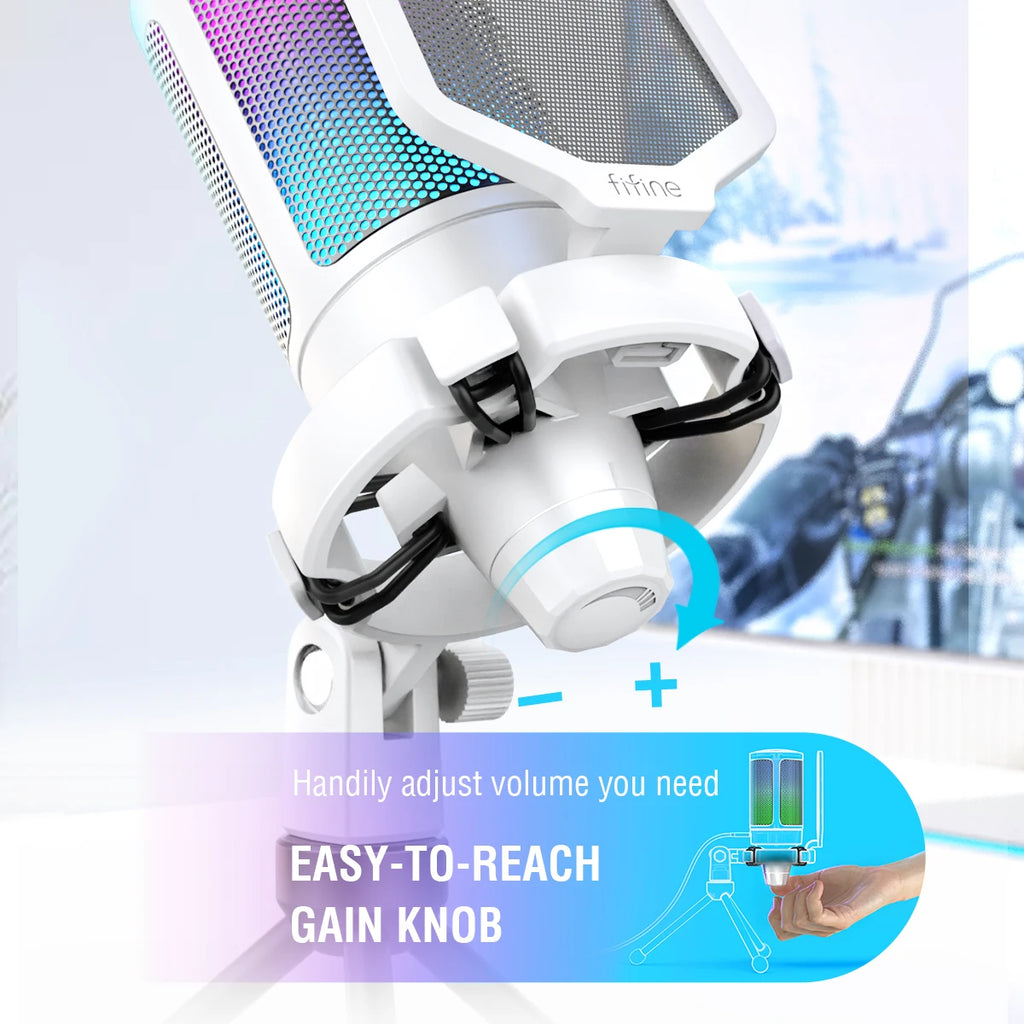 Plug-and-play USB connectivity makes it ideal for beginners and experienced creators alike, while the onboard gain control and touch-mute button allow instant adjustment without software. Complete with pop filter, shock mount and tripod stand, it delivers both performance and visual impact for PC and console users.