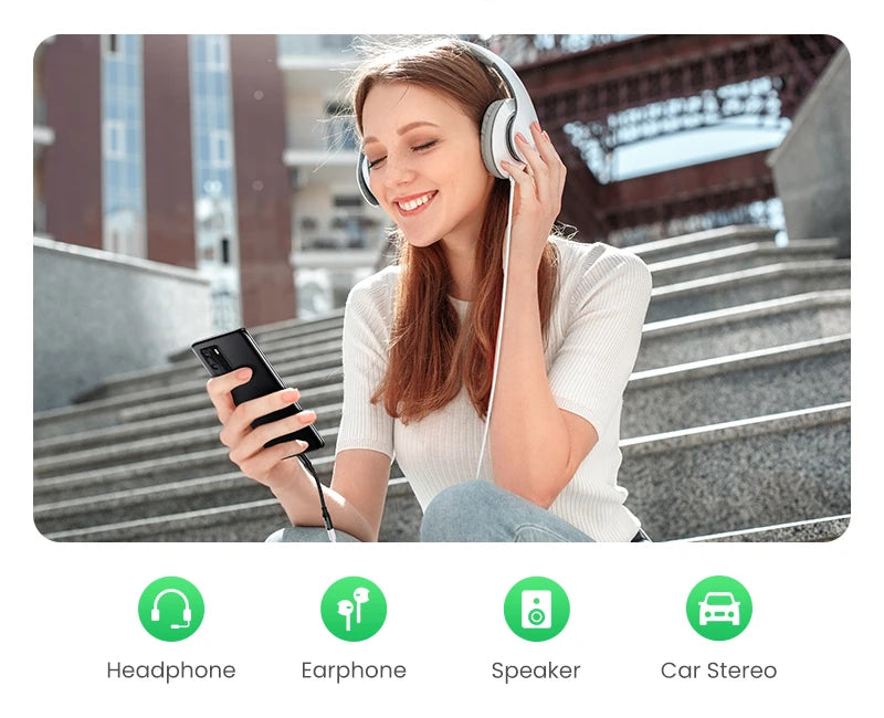 Connect standard 3.5mm headphones or AUX cables to compatible USB-C devices with ease.