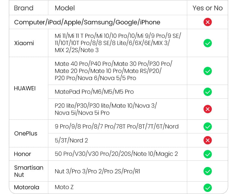 - Supported Brands: Huawei, Xiaomi, OnePlus, Honor, OPPO, Smartisan, Motorola, Nubia (see compatibility notes)
