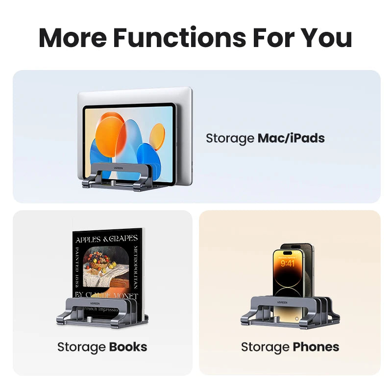 Allows you to store multiple devices such as a laptop, tablet and phone in one compact stand.