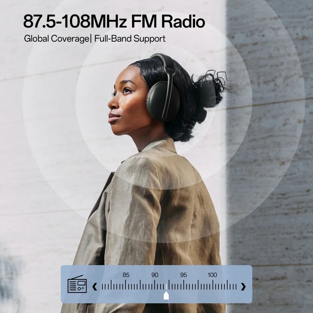 Tune into your favourite radio stations directly through the headphones without needing a smartphone or internet connection.